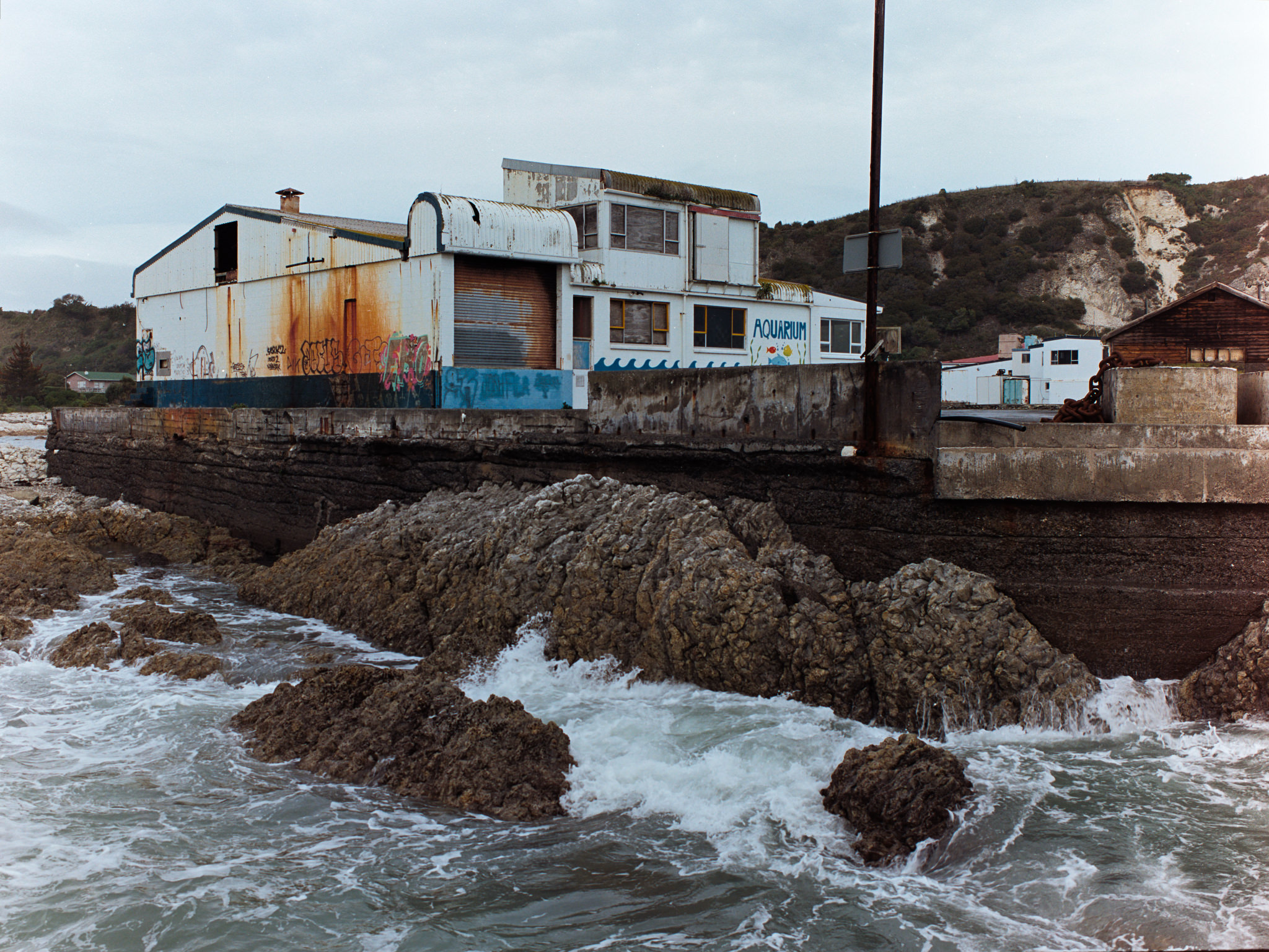 The last of the old fisheries buildings at the Kaikōura wharf.